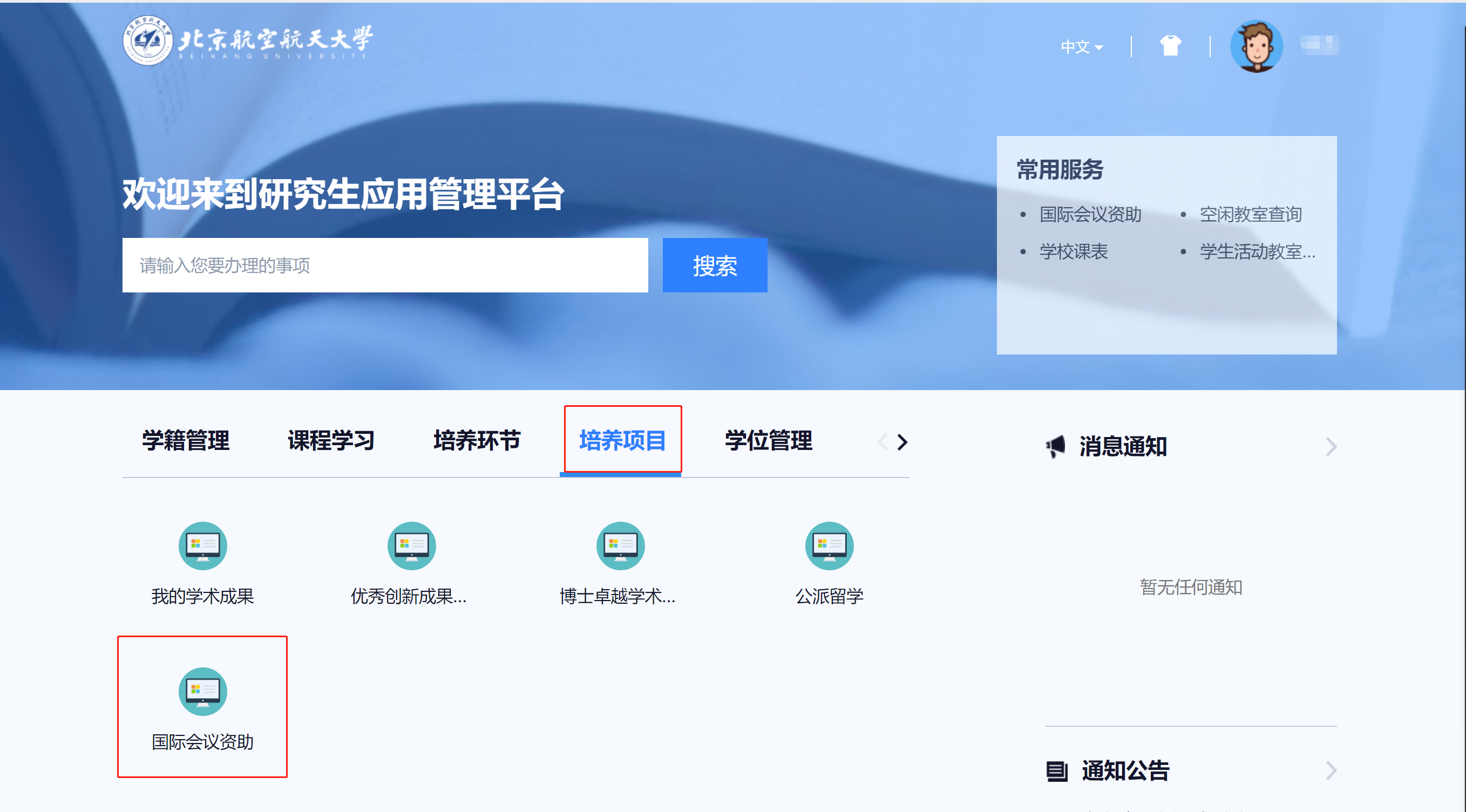 国际会议资助项目通过研究生信息管理系统在线申报,申请流程: