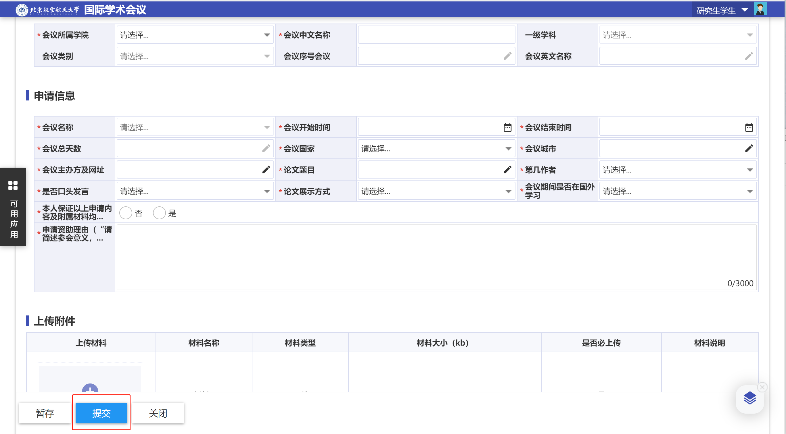研究生国际会议在线申报流程演示图